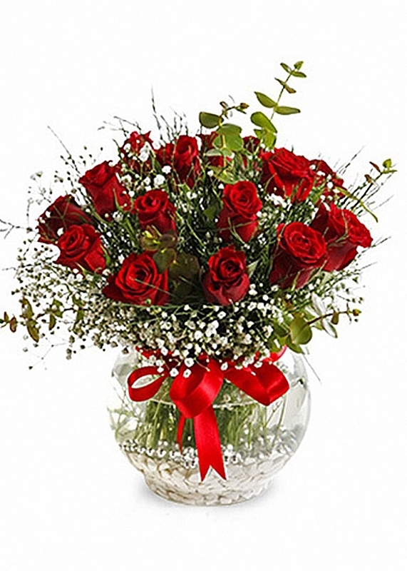 Cam Fanus İçerisinde 15 Adet Kırmızı Gül