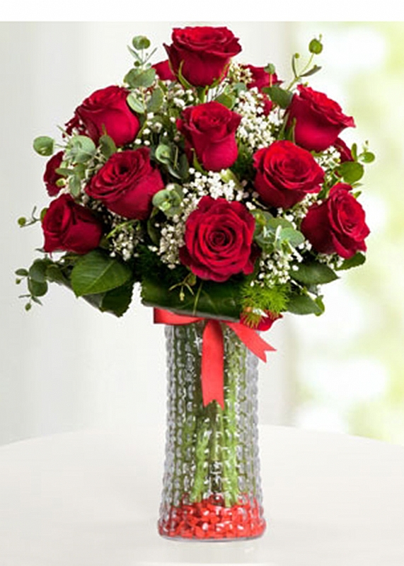 Cam Vazo İçerisinde 15 adet Kırmızı Gül Siparişi